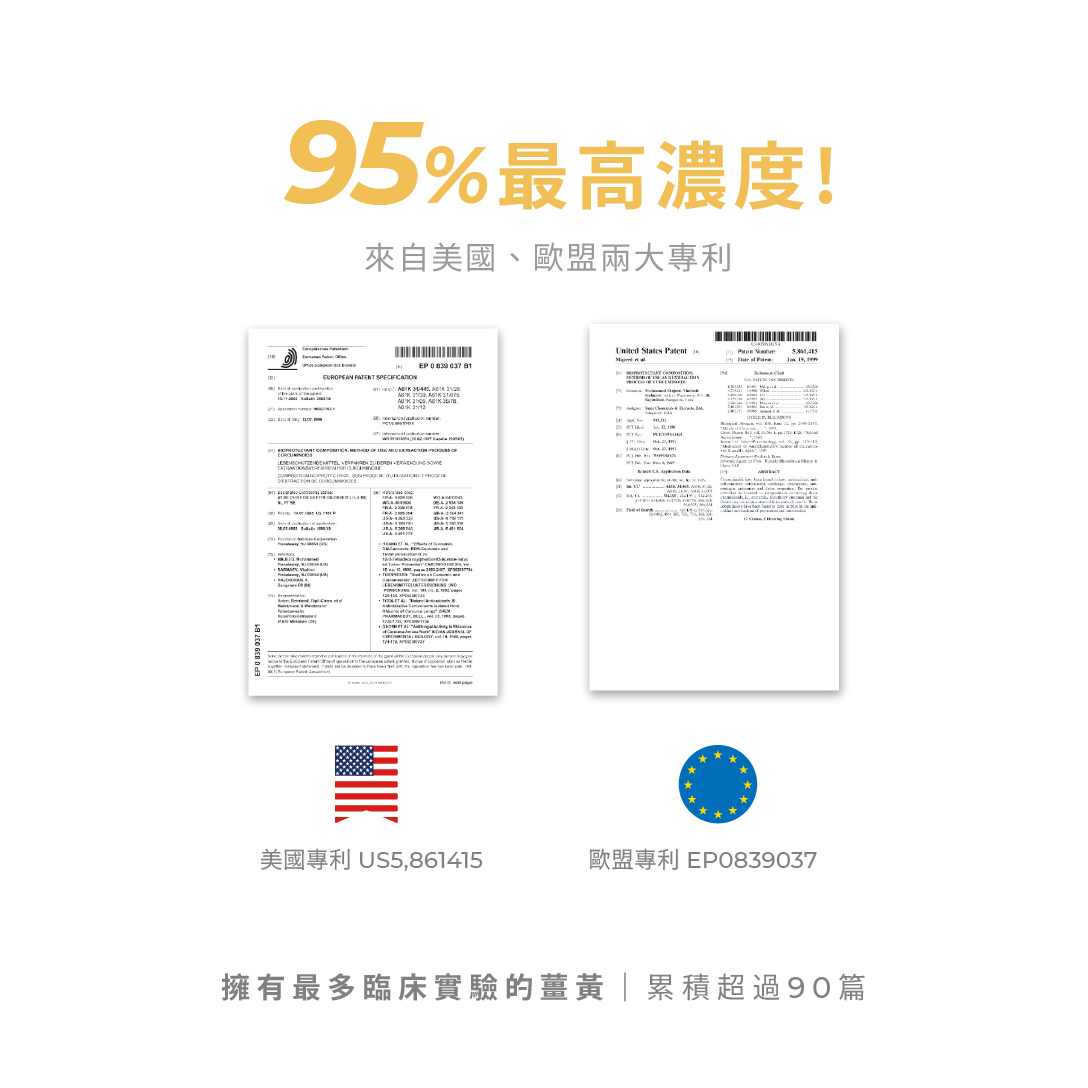 ⭐️高濃度95% C3 薑黃素,是目前市場上擁有最多臨床實驗認證的薑黃品牌,市場上唯一經過美國FDA核可GRAS的薑黃素